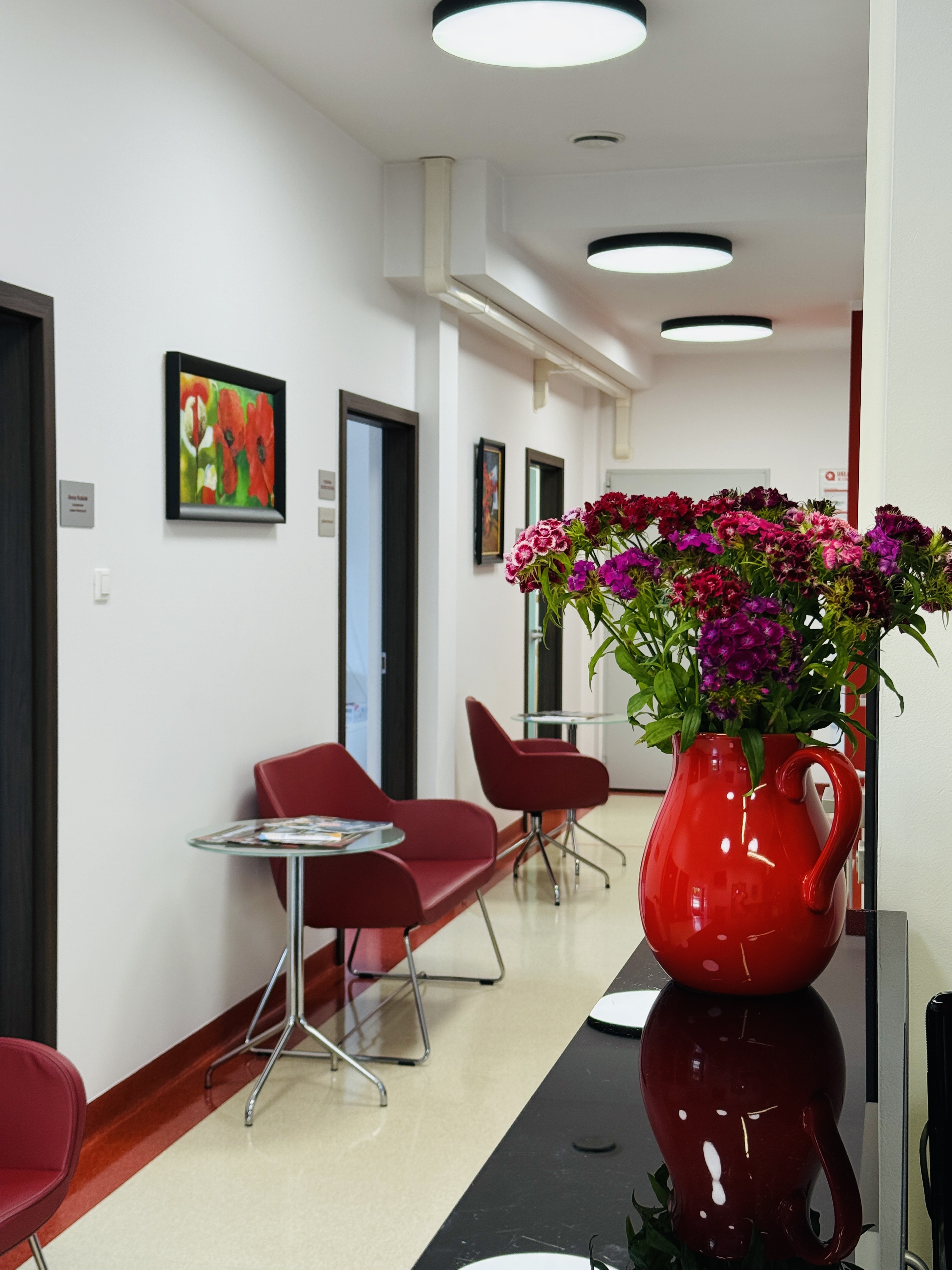 Przestronne poczekalnie z klimatyzacją, darmowym siecią Wi-Fi oraz wyciszającą muzyką w tle, gwarantujące spokój przed i po badaniu.